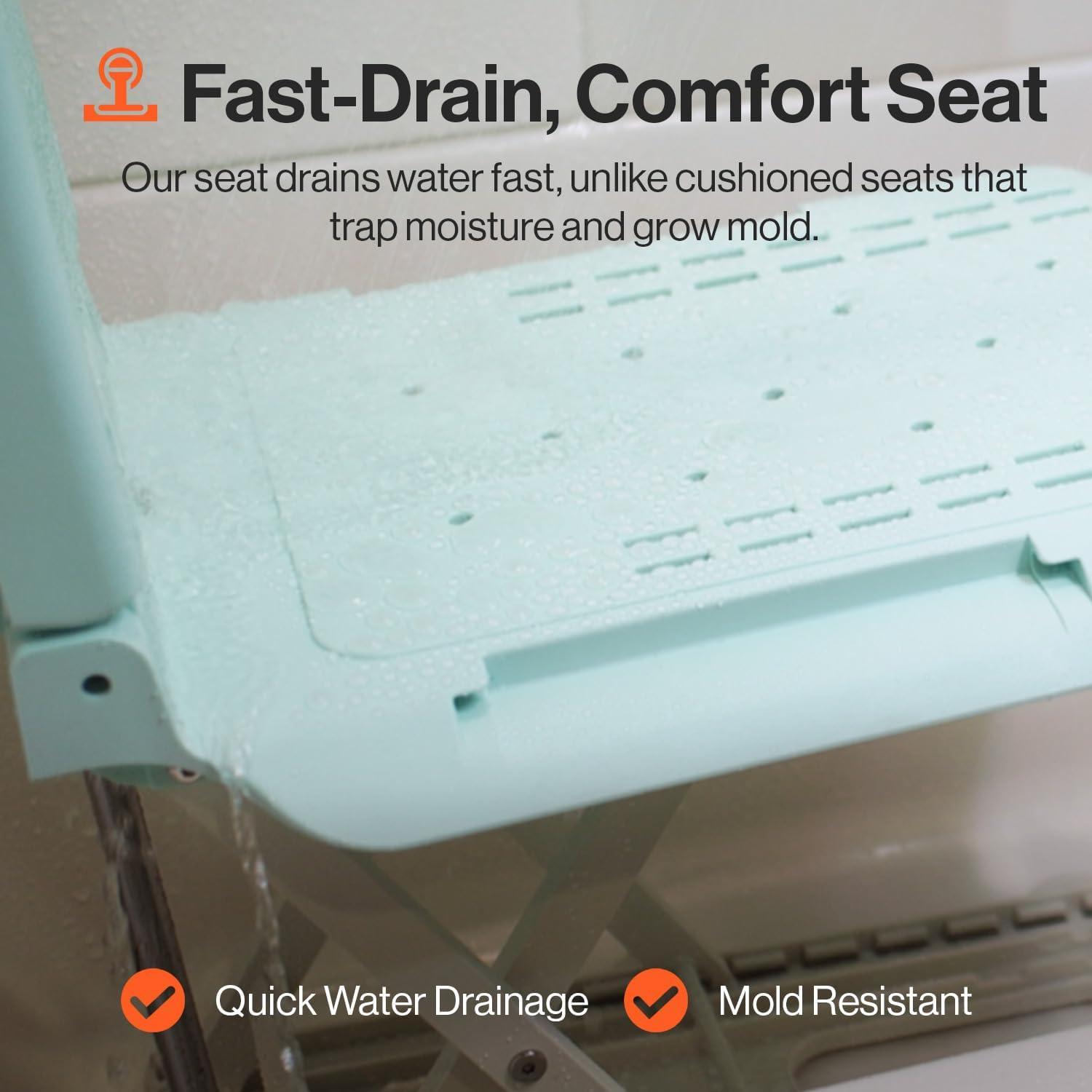 Ergonomic Comfort: Wide ergonomic seat with drain holes, removable side panels, and an included EVA cushion for added comfort during bathing.