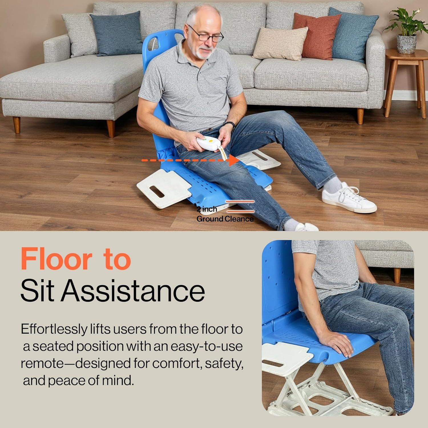 SuperHandy GoRise LT Portable Floor & Bath Lift – Lightest Weight 19lbs, Foldable, 330 Lbs Capacity, IP68 Waterproof Bath tub Lifts for Seniors, Ergonomic Seat with Removable Panels [Patent Pending]
